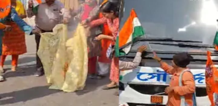 নিউজ ডেস্ক ::বাংলাদেশে বেশ কয়েক দিন ধরেই চলেছে হিন্দু নির্যাতন কর্মকান্ড। আর ইউনুস সরকার সব দেখেও অন্ধ ধৃতরাষ্ট্র হয়ে আছেন। আর এর মধ্যেই শনিবার বাংলাদেশের একটি উগ্র মৌলবাদী সংগঠন ভারতীয় বস্ত্র পুড়িয়ে প্রতিবাদ দেখায়। আর তার প্রতিবাদ রবিবার দেখা গেলো সল্টলেকে। বাংলাদেশে সংখ্যালঘুদের উপর নিপীড়ন ও অত্যাচারের প্রতিবাদে জামদানি শাড়ি পুড়িয়ে বিক্ষোভ দেখালেন রাজ্যের বাঙালি হিন্দু সুরক্ষা সমিতি। প্রতীকী এই বিক্ষোভে সামিল হয়েছিলেন বহু মানুষ। কিছু সময়ের জন্য উত্তপ্ত হয়ে ওঠে করুনাময়ী চত্তর।