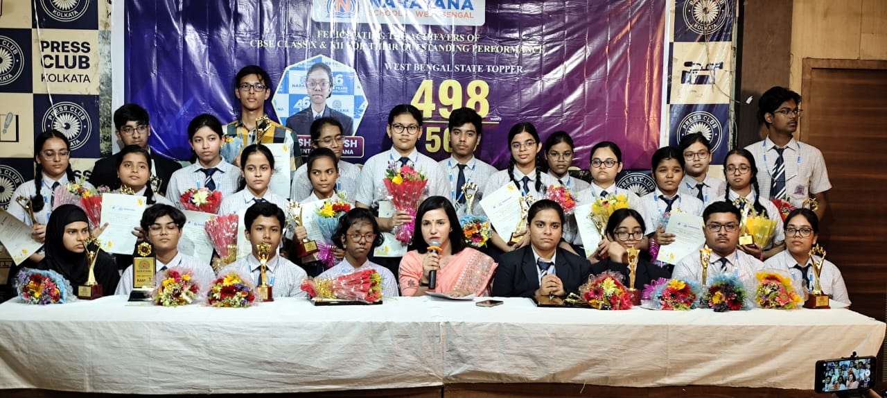 - দশম শ্রেণি: ৪৯ জন শিক্ষার্থী ৯৫% এর বেশি নম্বর পেয়েছে এবং ১৯৭ জন শিক্ষার্থী ৯০% এর বেশি নম্বর পেয়েছে। এই ফলাফলগুলি কেবল আমাদের শিক্ষার্থীদের ব্যক্তিগত উৎকর্ষতাই তুলে ধরে না বরং পশ্চিমবঙ্গ জুড়ে নারায়ণা স্কুলগুলির দ্বারা প্রদত্ত শক্তিশালী একাডেমিক কাঠামো এবং মানসম্পন্ন শিক্ষার উপরও জোর দেয়। সিবিএসই বোর্ড পরীক্ষায় আমাদের ধারাবাহিক দক্ষতা সু-সমন্বিত, উচ্চ-অর্জনকারী শিক্ষার্থীদের লালন-পালনের প্রতি আমাদের নিষ্ঠার প্রতিফলন ঘটায়। সামনের দিকে তাকিয়ে, আমরা আসন্ন শিক্ষাবর্ষে আমাদের সাফল্য প্রসারিত করতে আগ্রহী, সিআইএসসিই এবং ডব্লুবিবিএসই পরীক্ষায় একইরকম সাফল্যের লক্ষ্যে। নারায়ণা স্কুলগুলি আমাদের শিক্ষাগত উৎকর্ষতা এবং আমাদের শিক্ষার্থীদের সামগ্রিক উন্নয়নের লক্ষ্যে প্রতিশ্রুতিবদ্ধ।