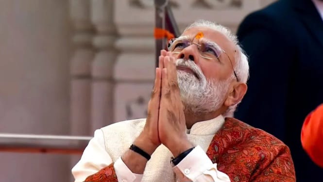 মঙ্গলবার বেলা ১১টা বেজে ৪৮ মিনিট নাগাদ উত্তোলন হল রাম মন্দিরের গেরুয়া ধ্বজা
