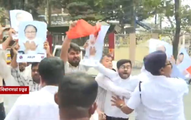 মহাকুম্ভকে ‘মৃত্যুকুম্ভ’ বলার প্রতিবাদে বিধানসভার বাইরে তীব্র প্রতিবাদ AVP-র